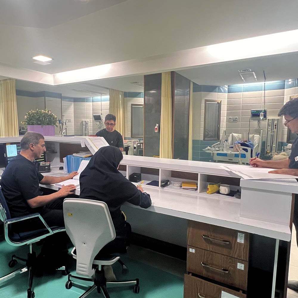 تیم پزشکی این بخش شامل متخصصان بیهوشی، مراقبتهای ویژه، پرستاران آموزشدیده و نیروهای پشتیبانی است که بهصورت ۲۴ ساعته در کنار بیماران حضور دارند و مداخلات درمانی سریع و دقیق را انجام میدهند.